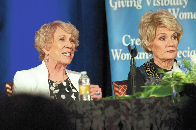 Former Nevada First Ladies Kathryn List, left, and Sandy Miller participate in a panel discussion in an event called First Ladies First at the Augustus Ballroom inside Caesars Palace casino-hotel in ...